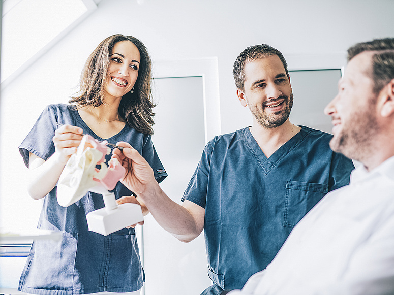Wir wissen: Kein Patient ist wie der andere. Deshalb bieten wir das Höchstmaß an persönlicher Beratung und Individualität in unseren Behandlungen. Unser Expertenteam, bestehend aus drei Zahnärzten und Zahnärztinnen, legt größten Wert auf Ihre Zahngesundheit. Das Vertrauen unserer Patienten und Patientinnen ist dabei der Grundstein des Erfolges und die Basis einer langfristigen Zusammenarbeit. Damit wir auf alle Anliegen individuell eingehen können, bieten wir Ihnen ein vielfältiges Leistungsangebot. Sehen Sie sich gerne in unserem Portfolio um und vereinbaren Sie einen Beratungstermin. Wir sind gerne für Sie da und finden für jedes Ihrer Anliegen die passende Lösung!
