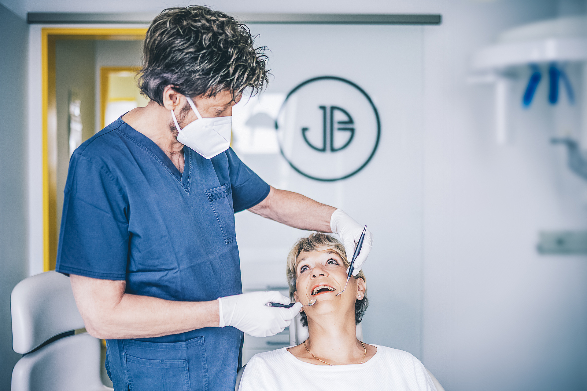Mindestens zwei- bis dreimal im Jahr empfehlen wir eine professionelle Reinigung in unserer Praxis. Dabei entfernen wir auch harte Beläge und kontrollieren den Sitz und Zustand des Implantats.